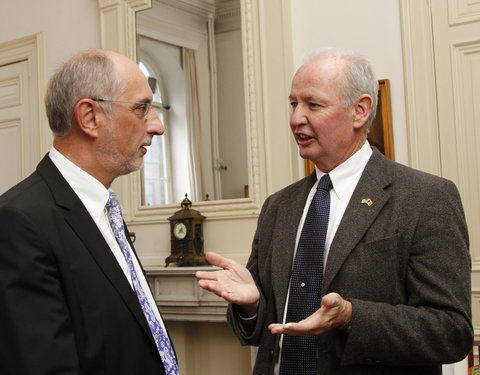 Vlnr. prof. Luc Taerwe (decaan faculteit Ingenieurswetenschappen en Architectuur), astronaut Charle…