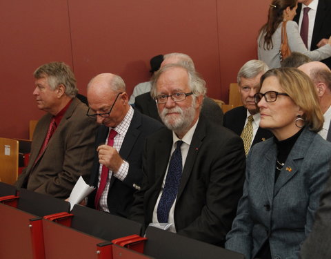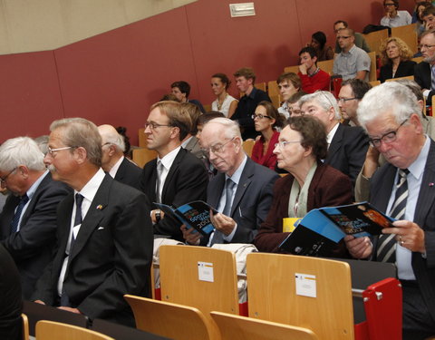 In het midden burggraaf Dirk Frimout, astronaut en eredoctor UGent