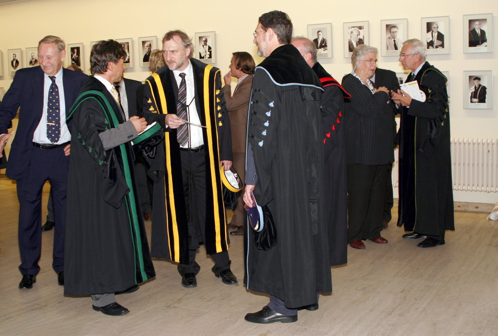 In het midden prof. Freddy Mortier (decaan faculteit Letteren en Wijsbegeerte) en rechts prof. Erik De Lembre - © UGent, foto Hilde Christiaens
