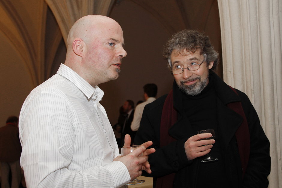 Tentoonstelling 'Philip Van Loocke, an exploration of another dimension': de kunstenaar (links) geeft uitleg - © UGent, foto Hilde Christiaens