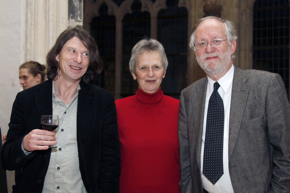 Vlnr. Guy Bouvin (curator Kunst-Zicht), Kaat Van de Velde (afdeling Communicatie UGent) en prof. Paul Van Cauwenberge (rector UGent) - © UGent, foto Hilde Christiaens