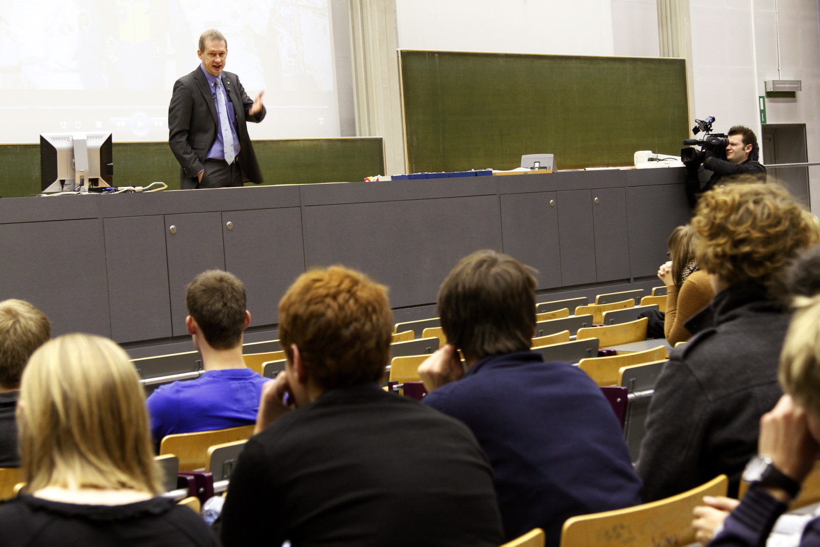 Frank De Winne geeft les aan studenten Ingenieurswetenschappen - © UGent, foto Hilde Christiaens