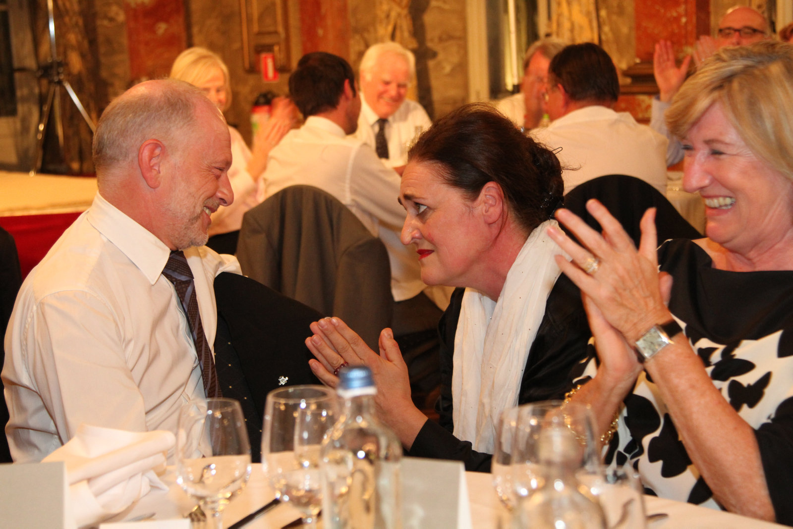 Diner in de Vlaamse Opera met muzikale verrassingsacts: vlnr. prof. Luc Moens (vicerector UGent), Bea Desmet (sopraan) en Lieve Bracke - © UGent, foto Hilde Christiaens
