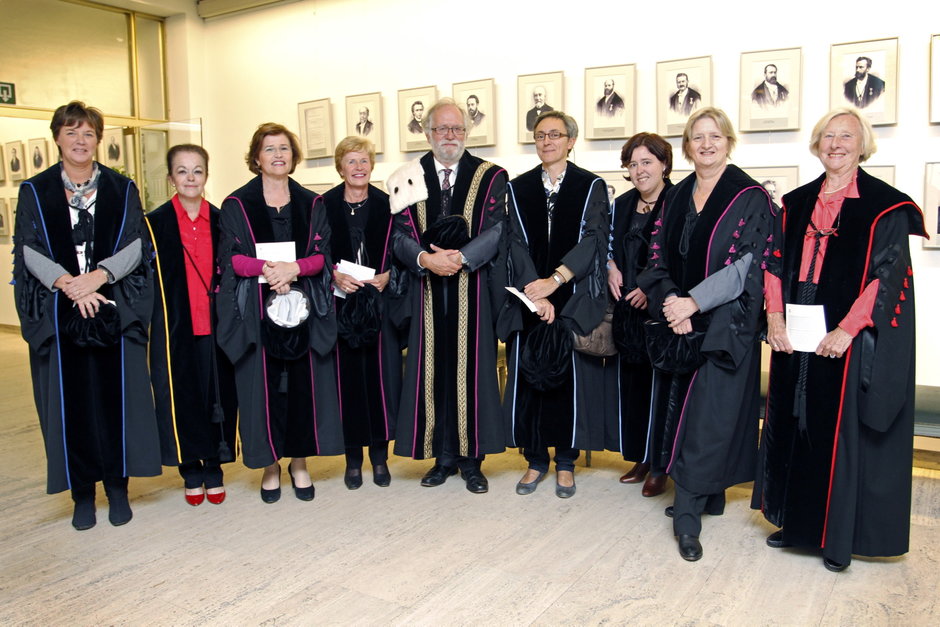 Vrouwelijke togati met in het midden rector Paul Van Cauwenberge - © UGent, foto Hilde Christiaens