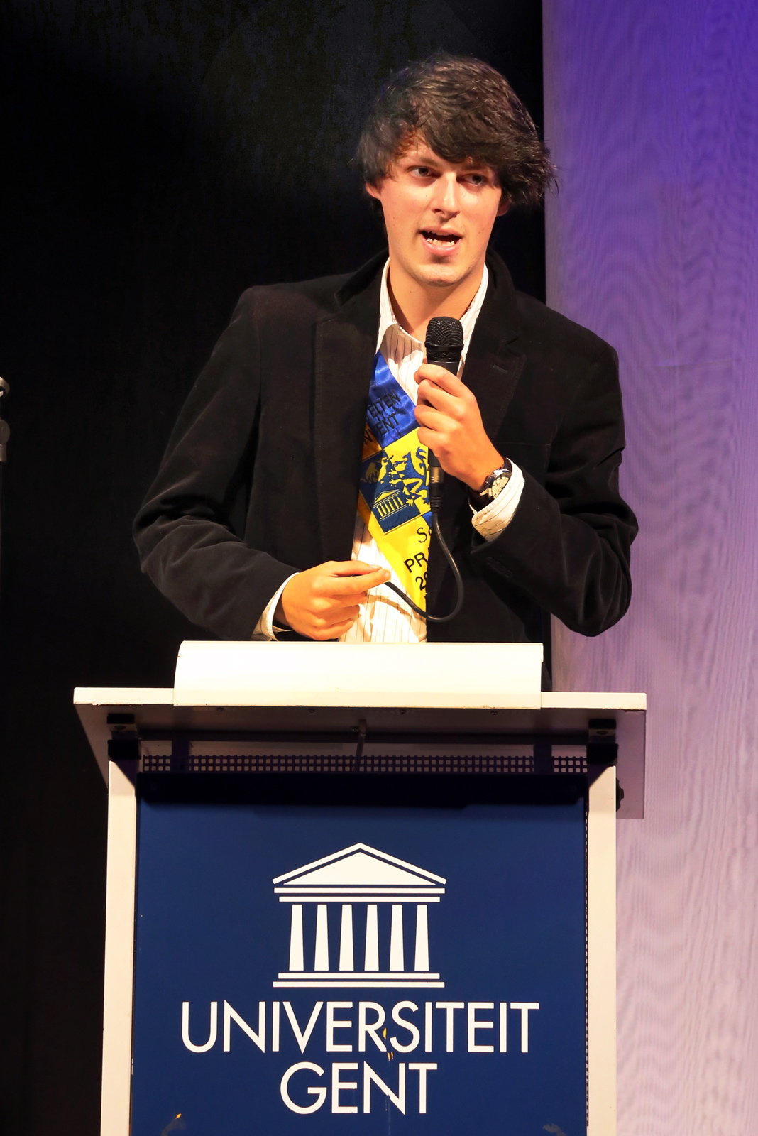 Toespraak door Sam Van Den Meersche, voorzitter FaculteitenKonvent Gent - © UGent, foto Hilde Christiaens