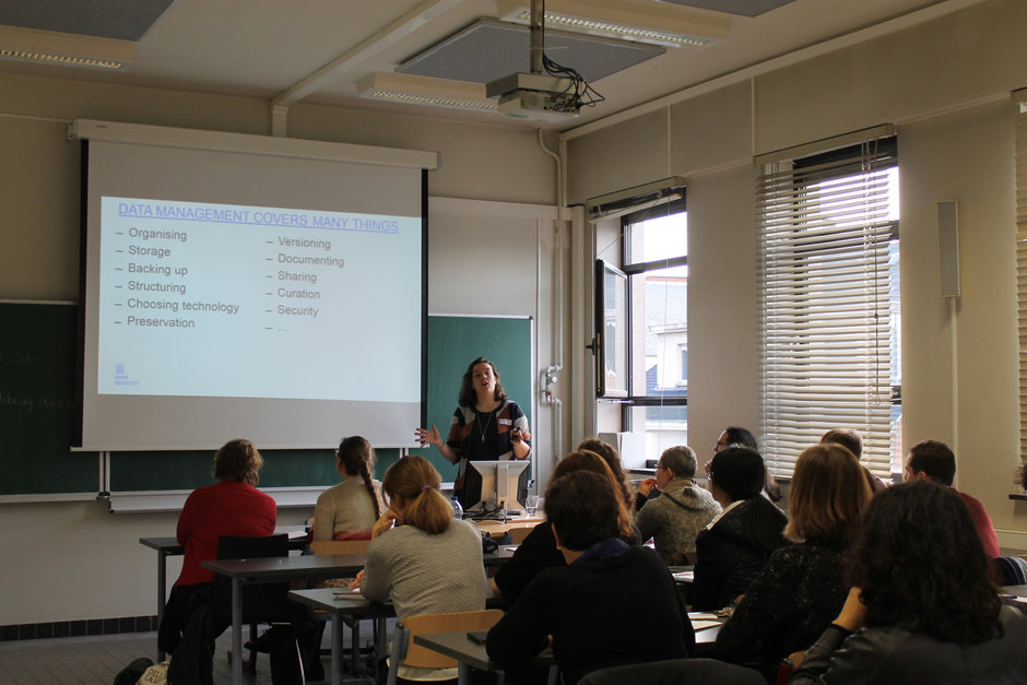 Presentatie door Katrien Deroo (aanspreekpunt datamanagement Letteren en Wijsbegeerte) - © UGent, foto Inge Claerhout