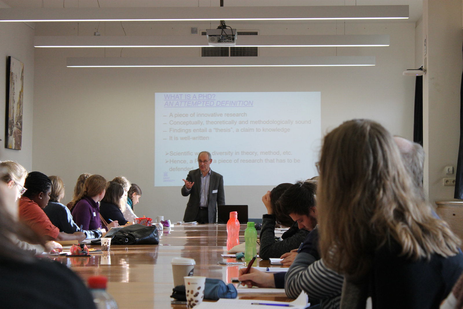 Presentatie door prof. Stef Slembrouck, onderzoeksdirecteur Letteren en Wijsbegeerte - © UGent, foto Inge Claerhout