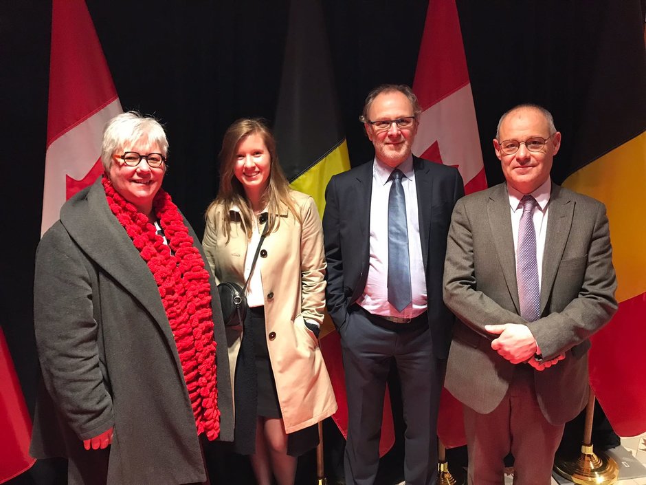 Vicerector Mieke Van Herreweghe, dr. Mieke Vandenbroucke, prof. Piet Van Avermaet en prof. Stef Slembrouck op het Belgisch-Canadees seminarie over meertaligheid - © UGent