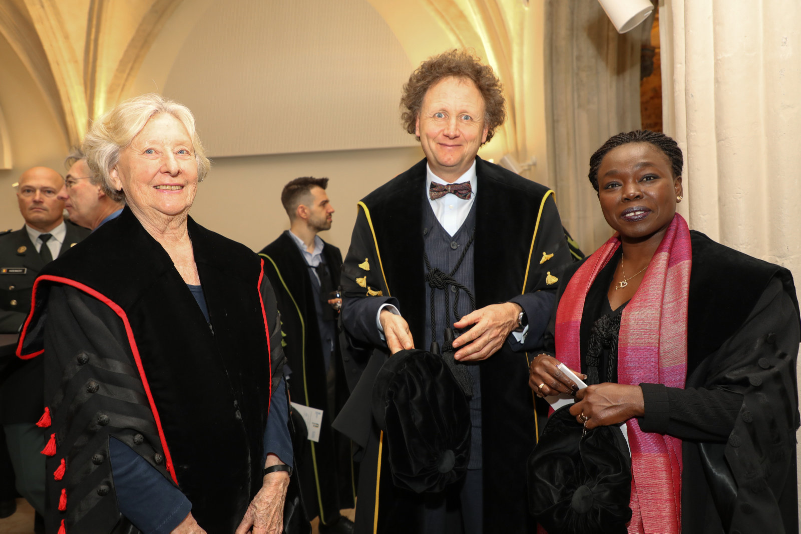 Vlnr. em. prof. Yvette Merchiers, prof. Pierre Schoentjes en eredoctor Fatou Diome - © UGent, foto Hilde Christiaens