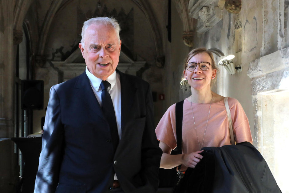 Vlnr. prof. Rainer Storb (eredoctor) en prof. Tessa Kerre (promotor) - © UGent, foto Hilde Christiaens